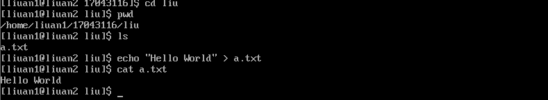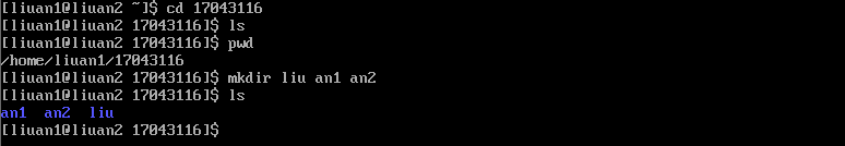 (3)进入以自己学号命名的目录,查看当前目录,然后创建以自己姓名拼音命名的目录