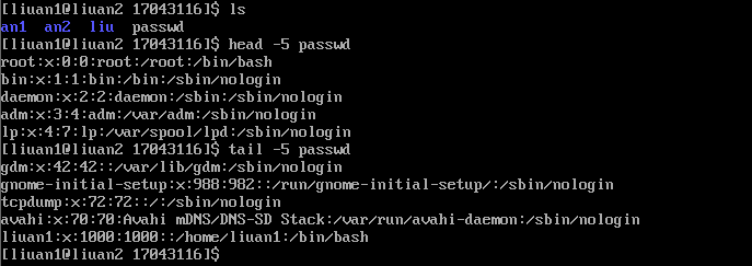 (9)用head查看passwd文件的前5行内容,用tail查看passwd文件的后5行内容