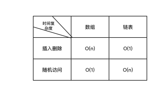 数组和链表是两种截然不同的内存组织方式。正是因为内存存储的区别,它们插入、删除、随机访问操作的时间复杂度正好相反