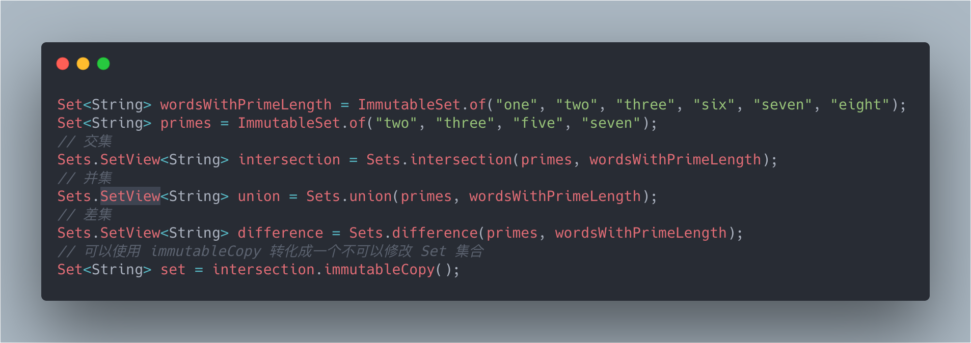 Sets 提供几个方法,可以快速求出两个 Set 集合的交集,并集以及差集。