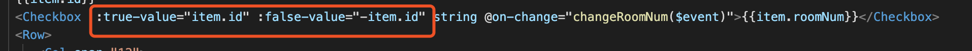 6、Checkbox要获取除了true和false的值,:true-value,:false-value同时赋值,且不能一样