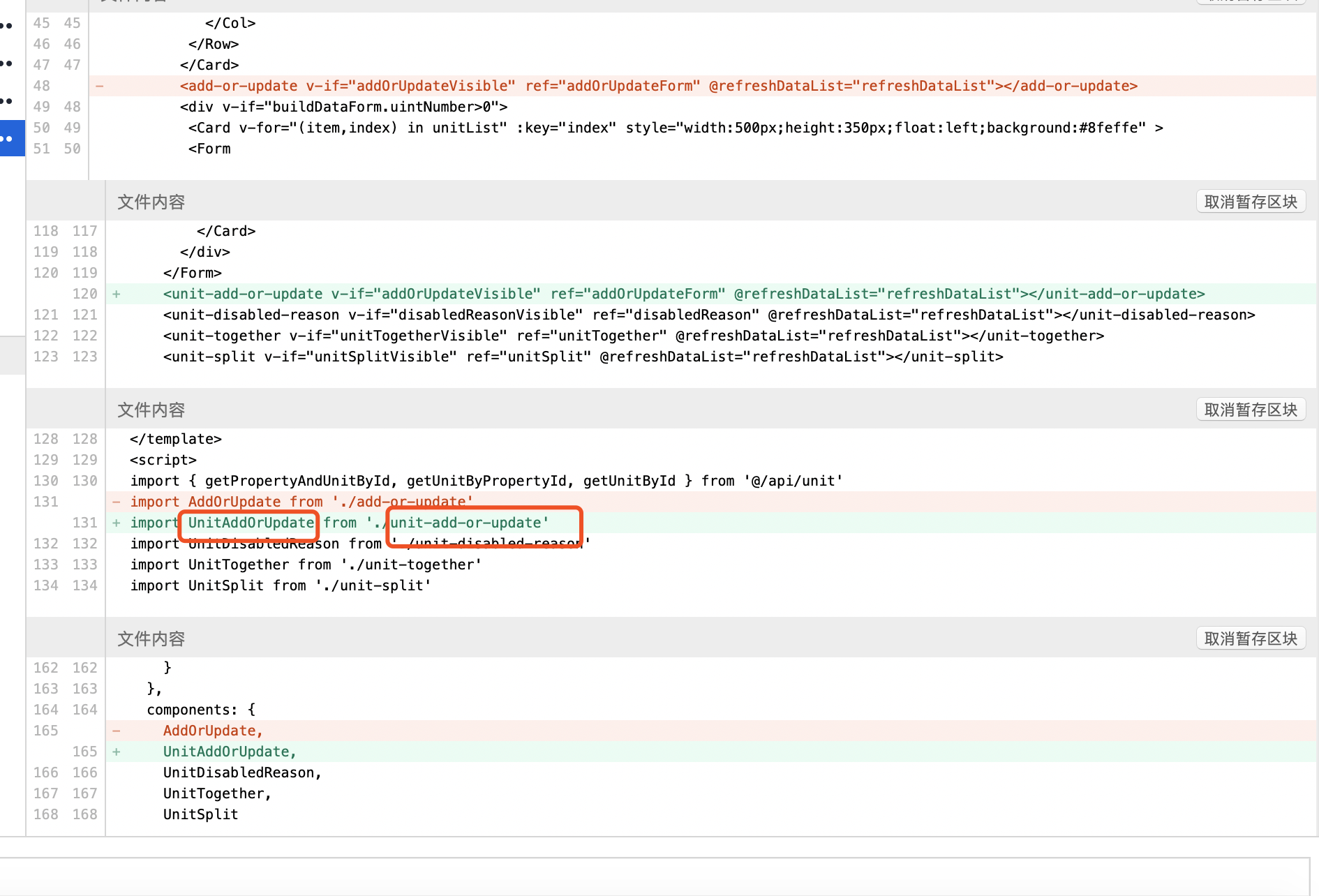 4、问题:修改组件名后,报错 解决:以下一定要拼写一致,也就是unit-add-or-update一定命名为UnitAddOrUpdate,不能