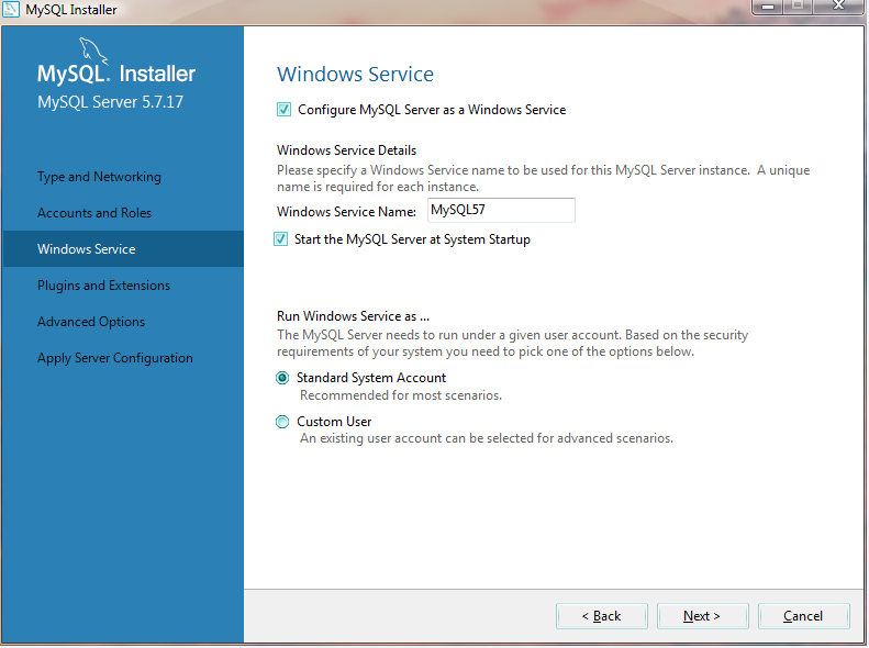 (5)单击next按钮,如图所示,进入开始安装和配置MySQL服务器界面。