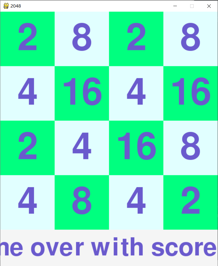 score_text = score_font.render((map.over() and "Game over with score " or "Score: ") + str(map.score), True,