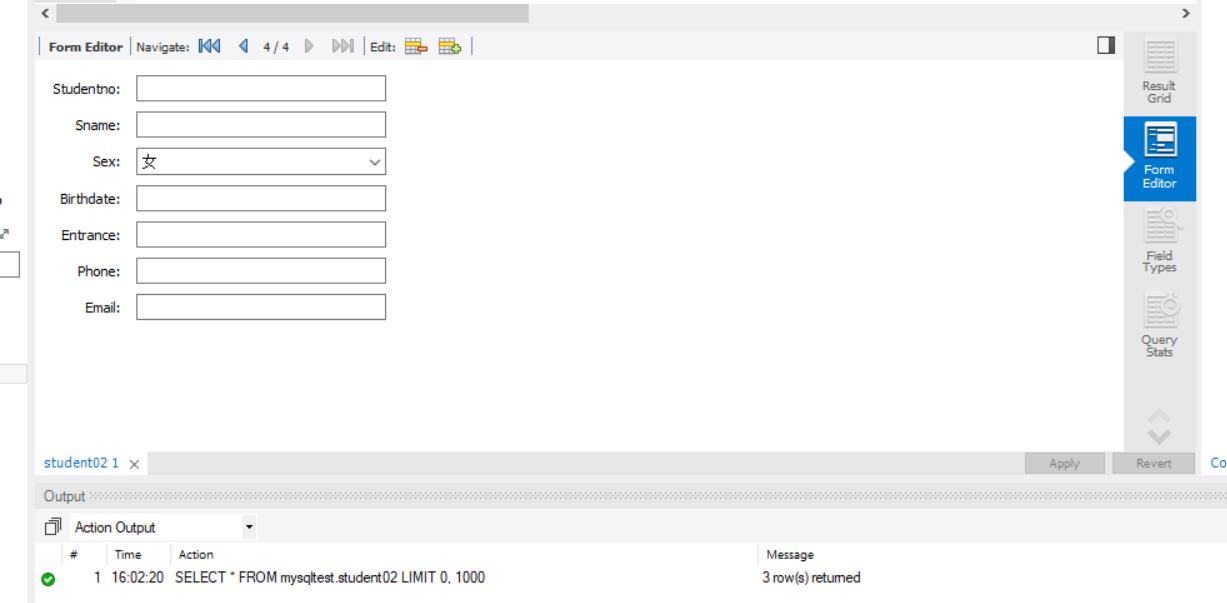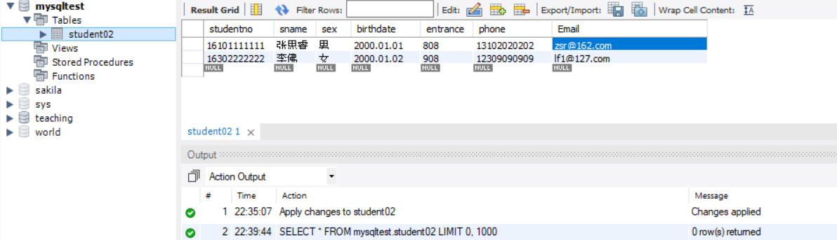 ①向数据student02表中添加数据。