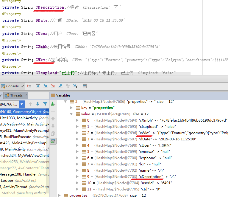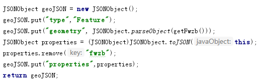 由model类生成GeoJSON时,注意在添加properties属性时,去掉重复的geometry字段。比如下文中的fwzb字段: