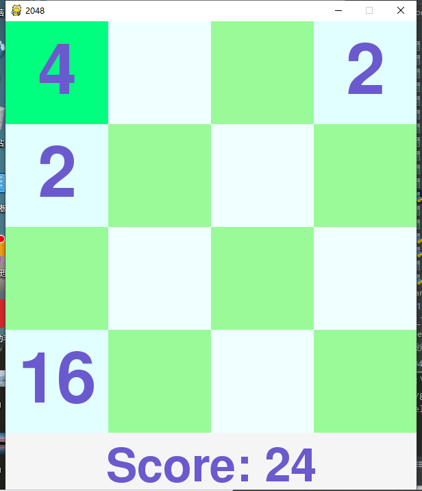 class Map: def init(self, size): self.size = size self.score = 0 self.map = [[0 for i in range(size)] for i in range(size)] self.add() self.add()