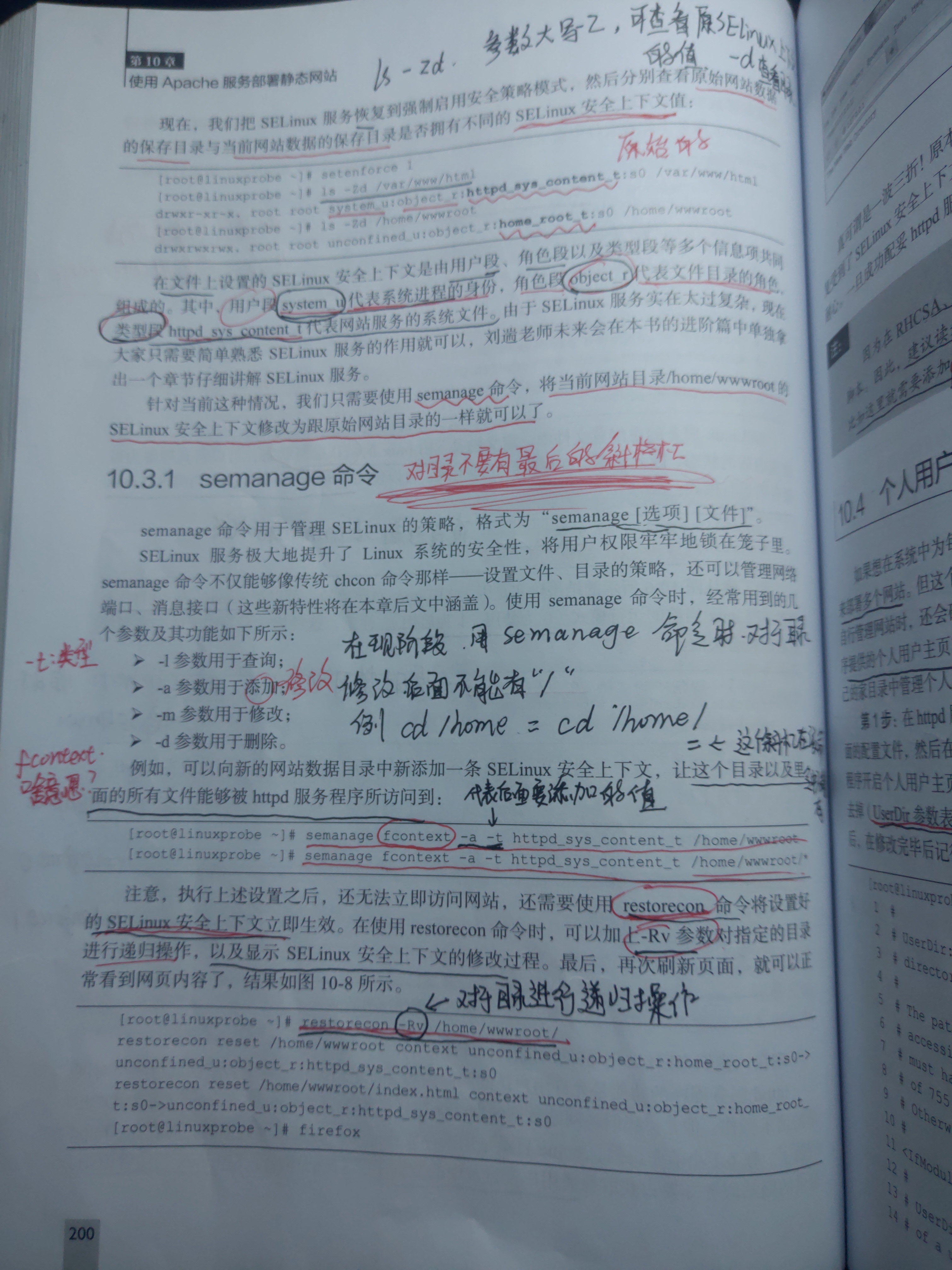 [root@linuxprobe ~]# semanage fcontext -a -t httpd_sys_content_t /home/wwwroot/10/*