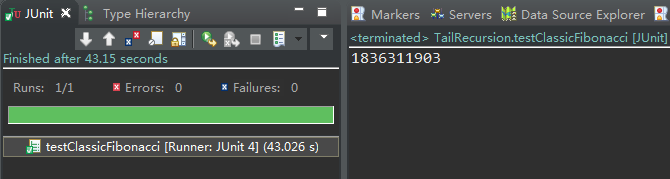 接着,用有尾递归方式的tailRecursionFibonacci计算得出斐波那契数列的第46项。
