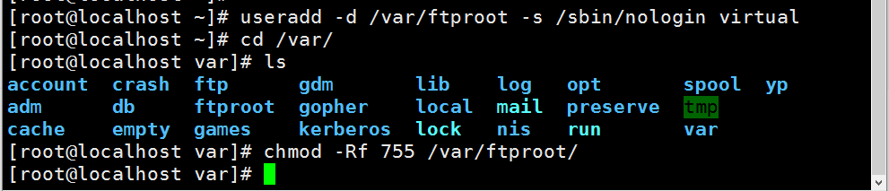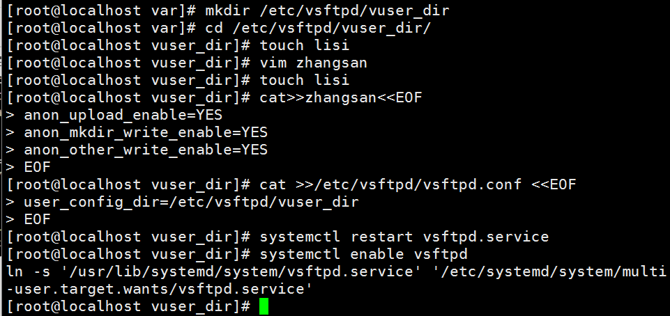 [root@localhost ~]# cat >>/etc/vsftpd/vsftpd.conf<<EOF