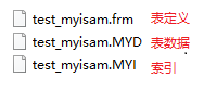 上图是是使用myisam引擎的文件,可以看出:MyISAM索引文件和数据是分离的(非聚集)。