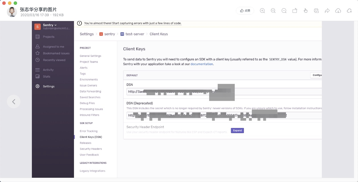 \Sentry\init(['dsn' => 'http://b260c1b8fff7dac20c424ab04f82ebbf@sentry-dev.zhang.cn/11']);