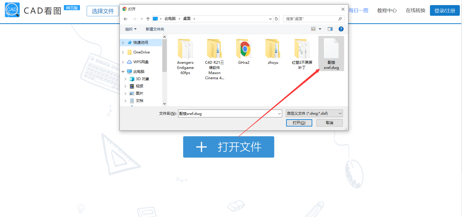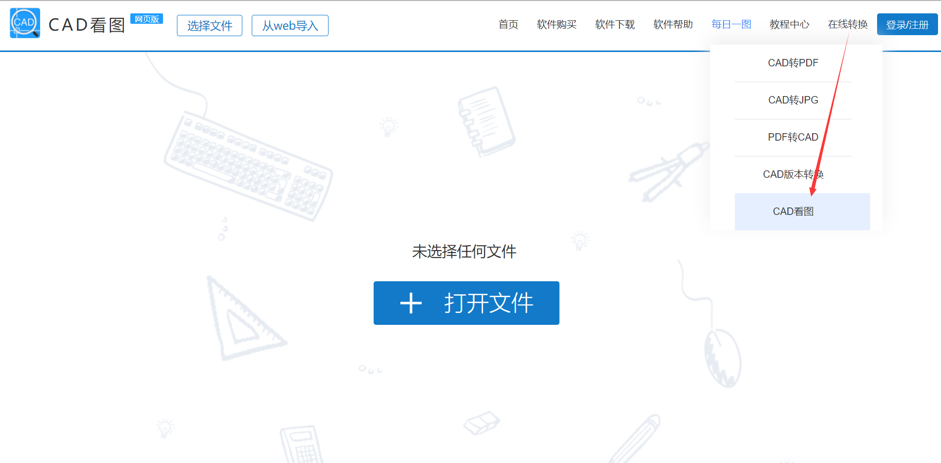 打开支持在线查看cad图纸的网站后在导航栏中点击在线转换系列中我们需要使用到的cad看图按钮。