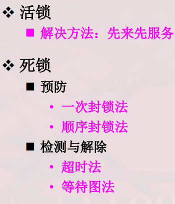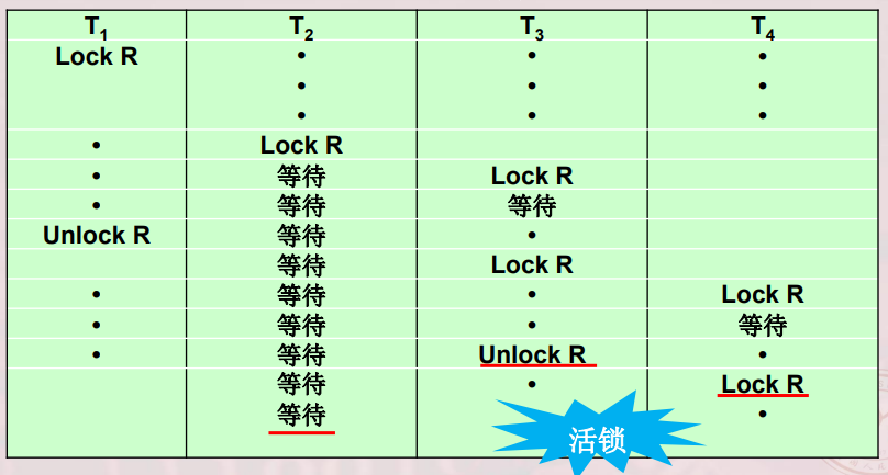 - 活锁:某个事务被其它后来的事务抢占了,产生一直没有运行的现象