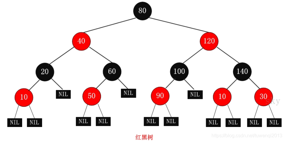 (3) 每个叶子节点是黑色。 [注意:这里叶子节点,是指为空的叶子节点!]