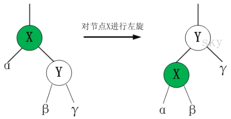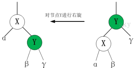 right[x] ← left[y] // 将 “y的左孩子” 设为 “x的右孩子”,即 将β设为x的右孩子