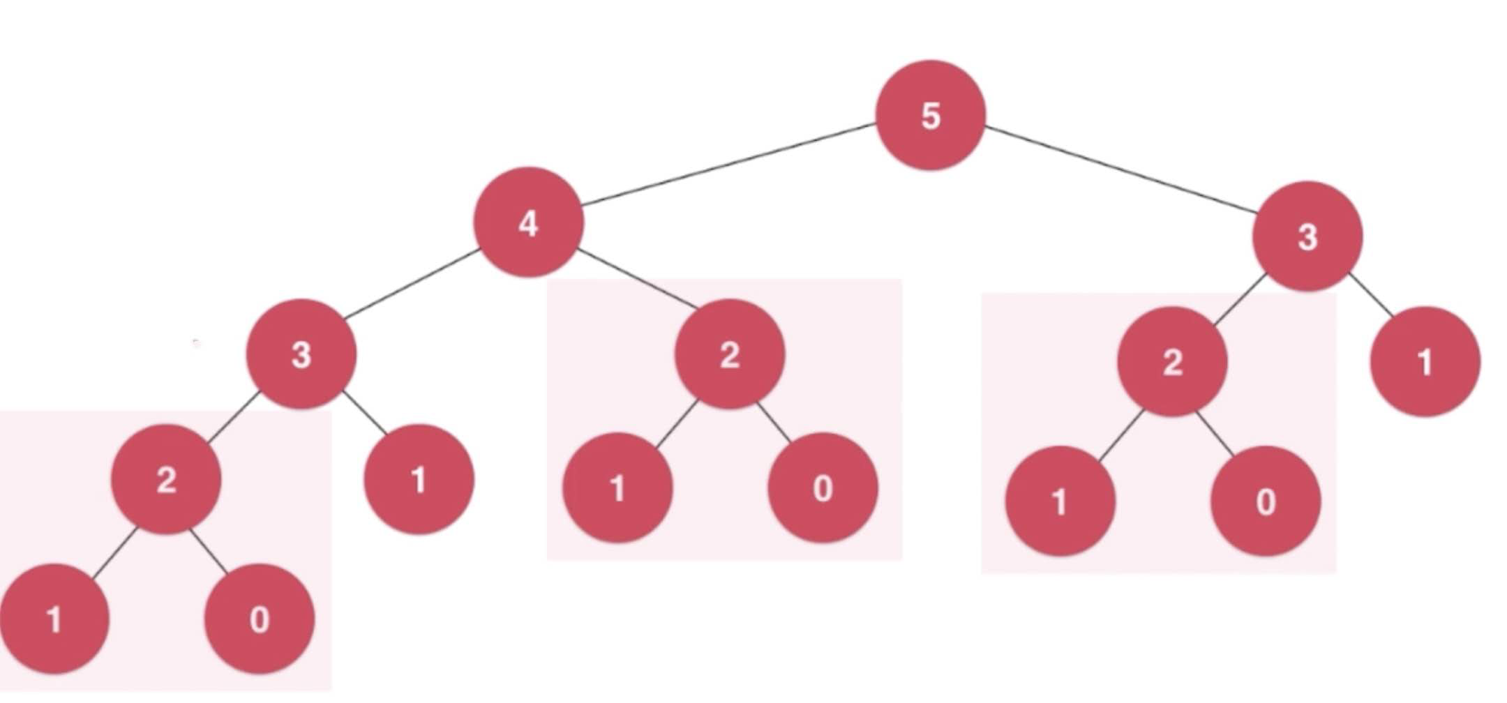 而2则被计算了3次,这还是n = 5的情况下,如果随着n值的增大,重复计算的次数就会越来越多。