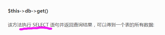 而在ci中相当于选择需要查询的字段,真真执行的是get来执行查询。