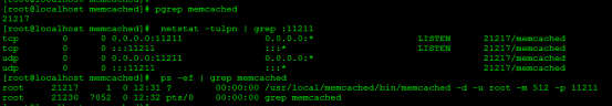 [root@localhost ~ memcached-1.4.21]# netstat -tulpn | grep :11211