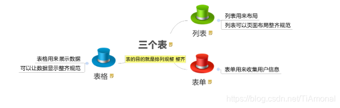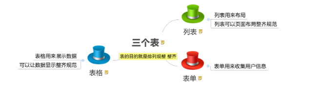 为了让我们页面显示的更加整齐,我们需要学习三个表(表格、表单、列表)