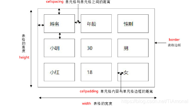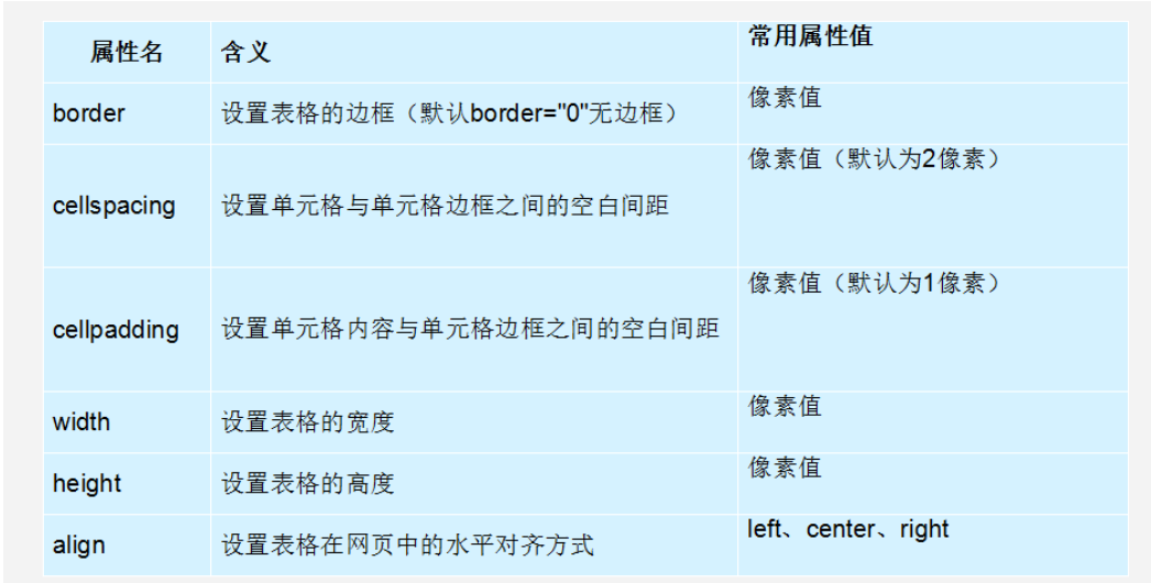 表格有部分属性我们不常用,这里重点记住 cellspacing 、 cellpadding。
