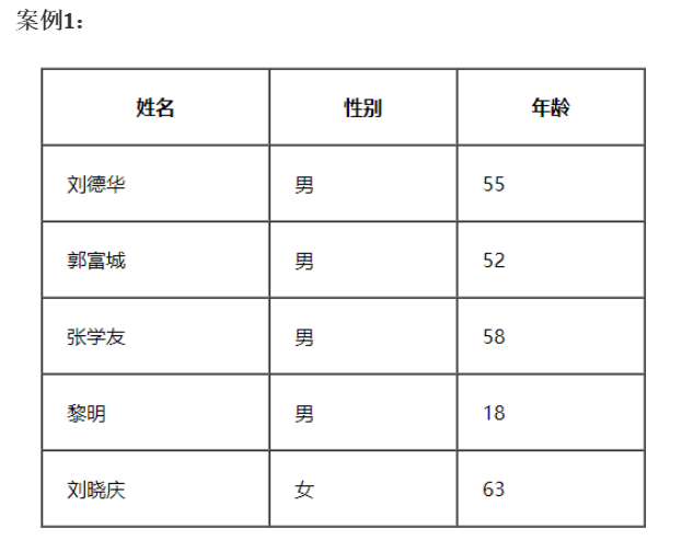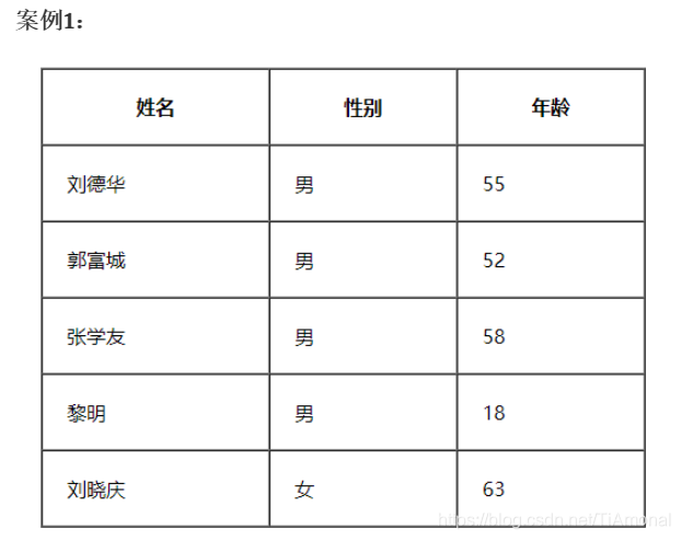 <tr> <td>刘德华</td> <td>男</td> <td>55</td> </tr>