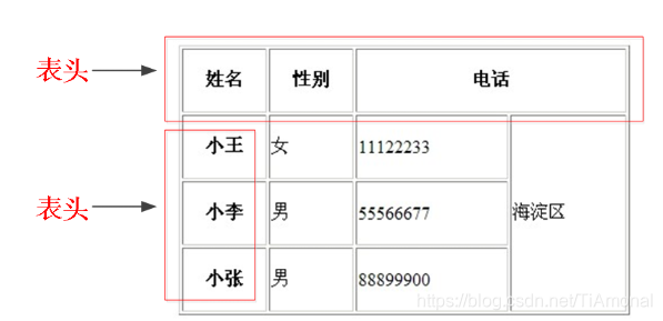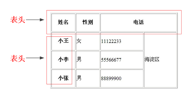 <tr> <th>姓名</th> <th>性别</th> <th>年龄</th> </tr>