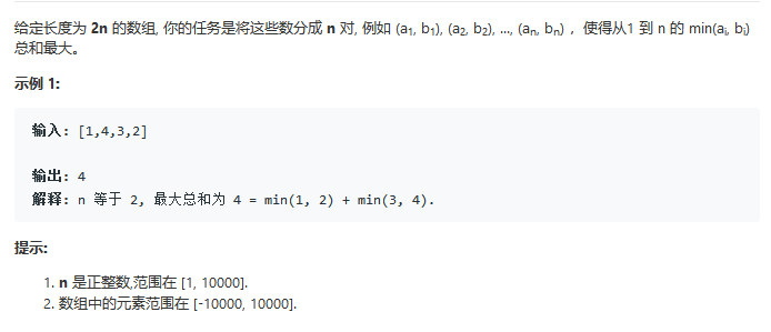 原文链接:https://leetcode-cn.com/problems/array-partition-i/