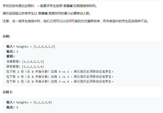 原文链接:https://leetcode-cn.com/problems/height-checker/