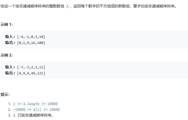 原文链接:https://leetcode-cn.com/problems/squares-of-a-sorted-array/