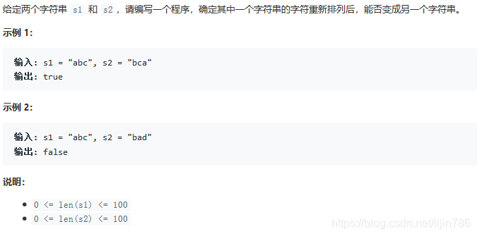 原文链接:https://leetcode-cn.com/problems/check-permutation-lcci/