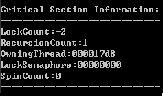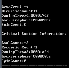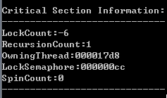 LockCount 这是临界区中最重要的一个字段。它被初始化为数值 -1;此数值小于-1
