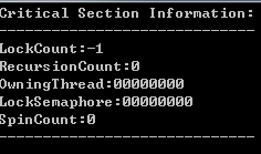 我们看看用InitializeCriticalSection初始化一个临界区对象后,这些成员变量(除去DEBUG外)都是什么样子。