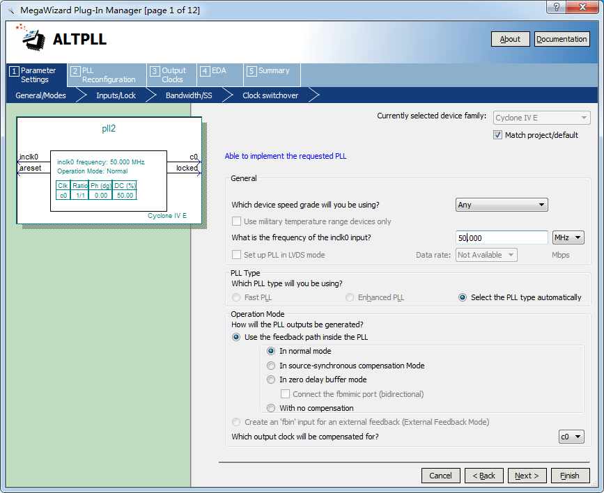 在弹出的设置中,选择输入时钟为50MHz,如下所示。
