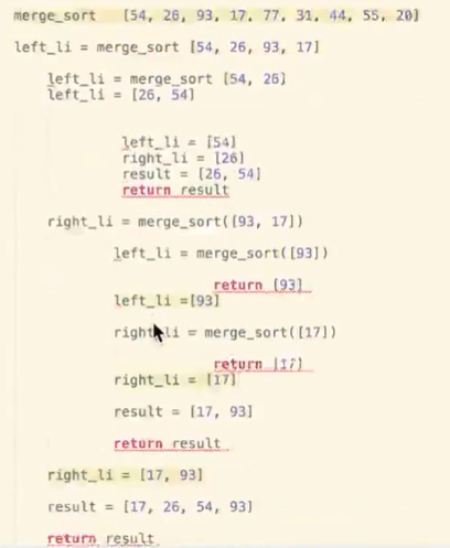 #将两个有序的子序列合并成一个整体merge(left,right)