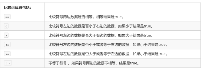 public static void main(String[] args) { System.out.println(1==1);//true System.out.println(1<2);//true System.out.println(3>4);//false System.out.println(3<=4);//true System.out.println(3>=4);//false System.out.println(3!=4);//true