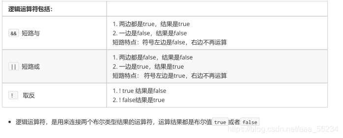 public static void main(String[] args) { System.out.println(true && true);//true System.out.println(true && false);//false System.out.println(false && true);//false,右边不计算 System.out.println(false || false);//falase System.out.println(false || true);//true System.out.println(true || false);//true,右边不计算 System.out.println(!false);//true }