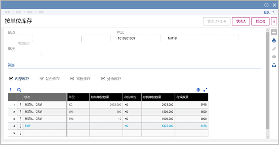 库存查询中,可以对不同批次的物料,按照单位统计分析。