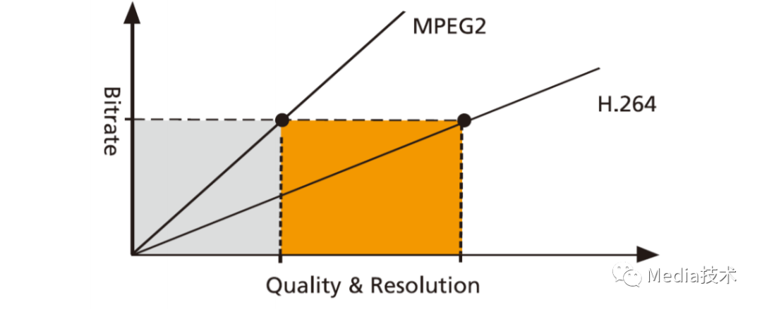 H.264 的目标是在同等画质情况下,码率要是MPEG-2的半倍。因此,在同样码率情况下,H.264画质以及分辨率也比MPEG-2有较大提升。