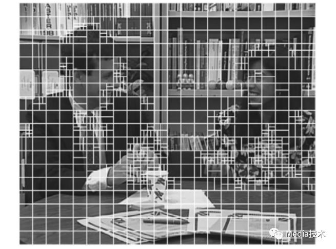 H.264会根据RDO选择出最佳块划分方式。图像平摊区域倾向于大块,而在纹理复杂或者运动较大区域倾向于选用小的块划分,在一点在上图中也得到了很好的印证。