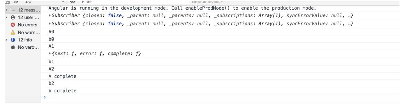 打印结果是一致的;也就是说 subject 的执行机制其实跟我们猜想的一样;建立一个 subject 先订阅 observable(数据源),再把我们的真正的 observer 加到 subject 中,这样一来就能完成订阅,而每个加到subject 中的 observer 都能整组的接收到相同的元素;总结出来就是两句话: