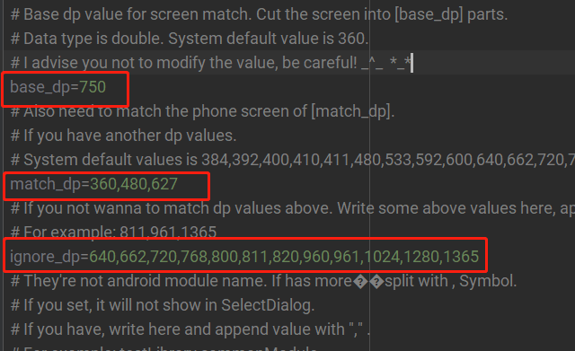 match_dp: 这个属性 是指适配哪些特定的dp。采用默认设置就好。如果遇到特殊dp值需要精确适配的,就加入到这个参数后面。在重新执行ScreenMatch后,会新生成对应dp的资源。