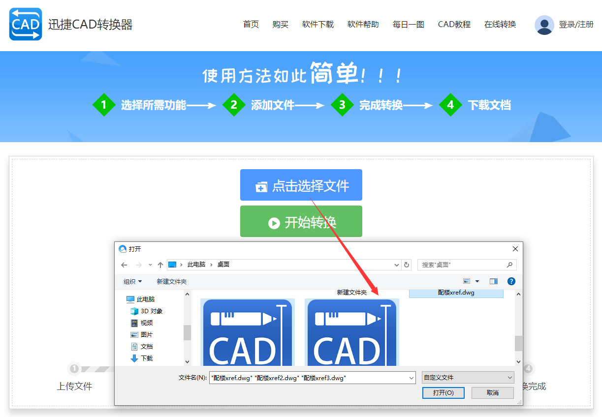 随后会跳转到相应的cad版本转换界面,此时点击选择文件根据出现的添加文件框把准备好的cad文件添加到该转换界面。