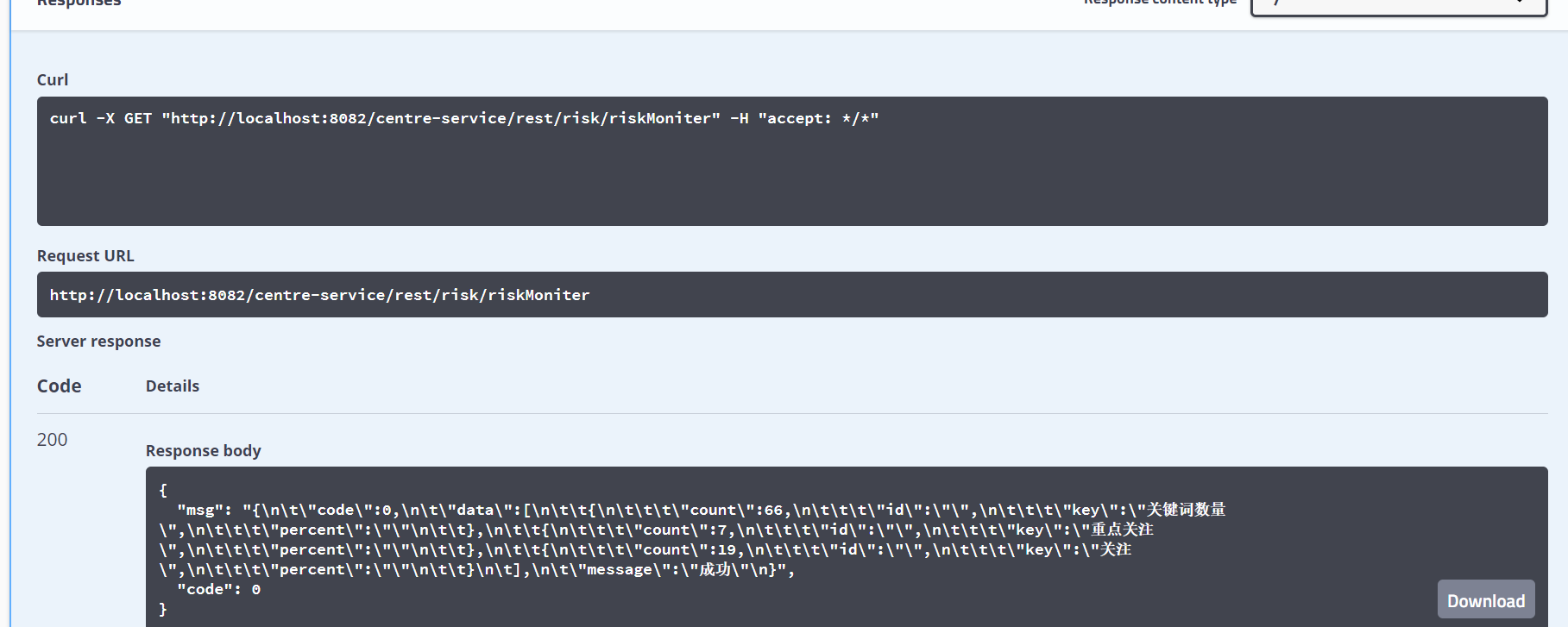@GetMapping(value="serviceapi/v1/riskMoniter/keywordstats")