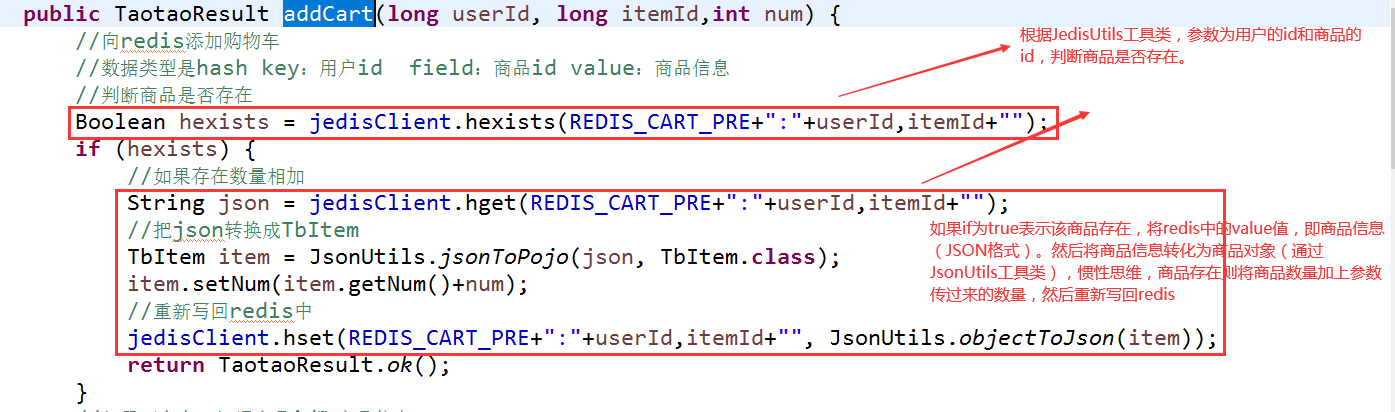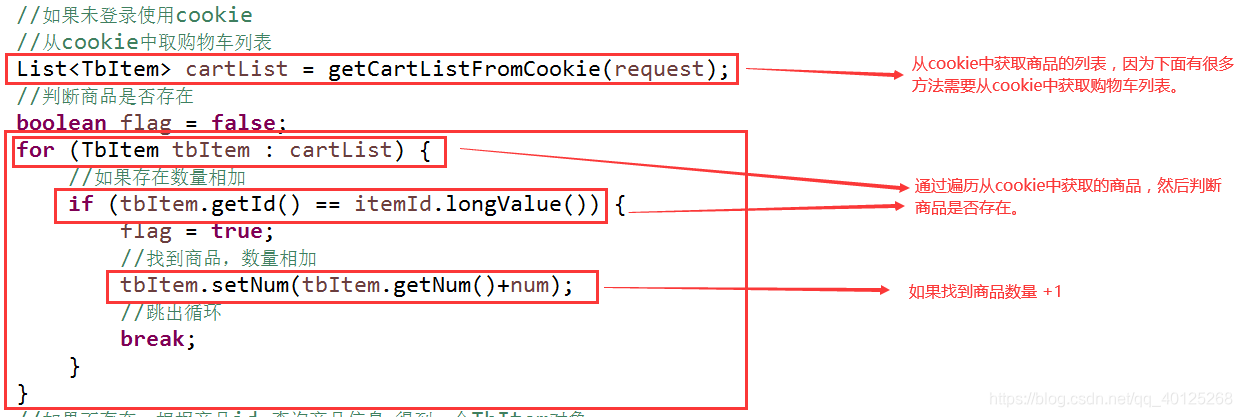 2.然后将购物车商品遍历,判断购物车中商品是否存在