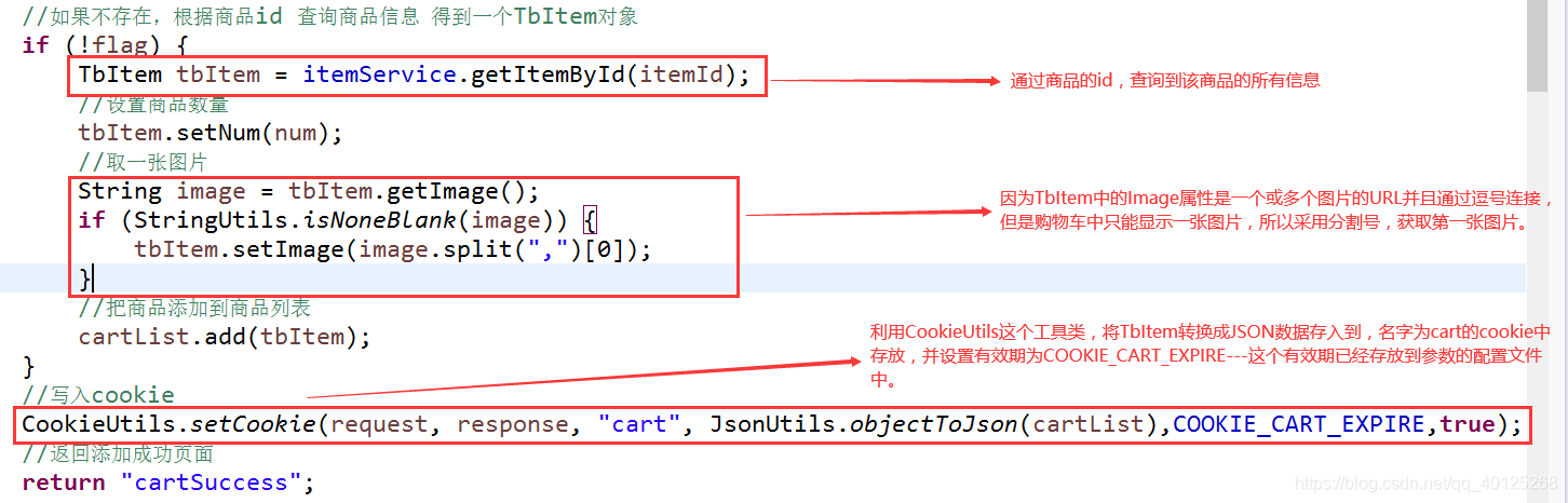 4.如果没找到商品,就在购物车中添加新的商品信息,并且将购物车重新添加到cookie,然后返回到添加成功页面!
