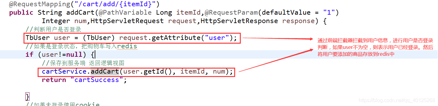 1.对每一个购物车相关的操作,都进行一个用户是否登录的判断。