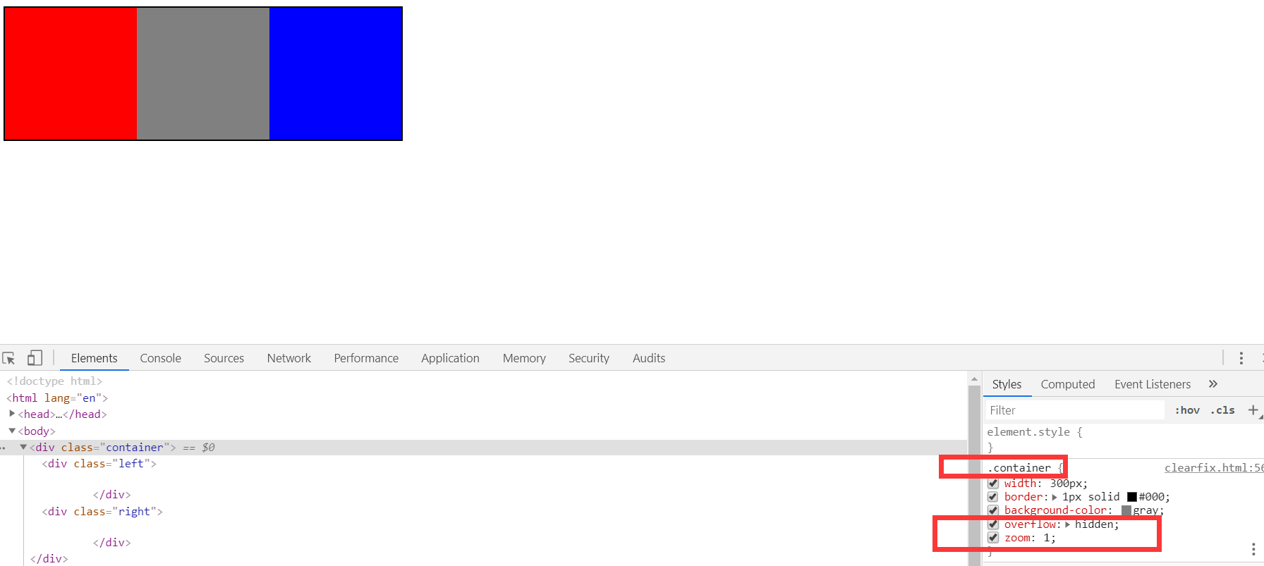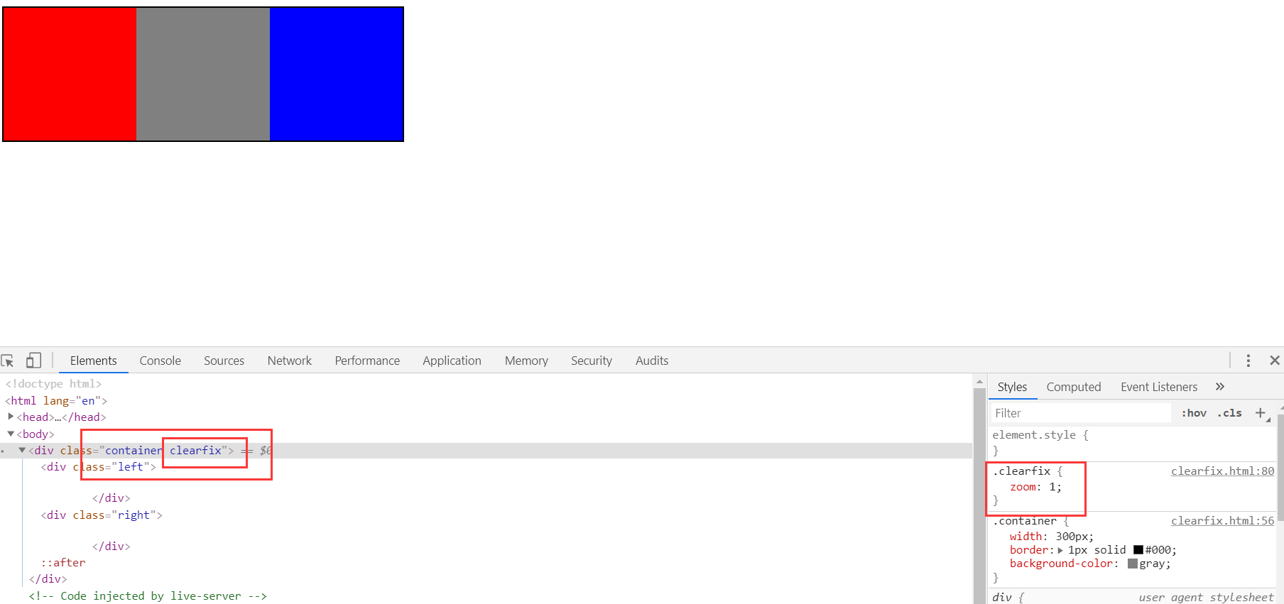 - 在浮动元素后添加clear命名的<div>,给div添加.clear{clear:both}样式: