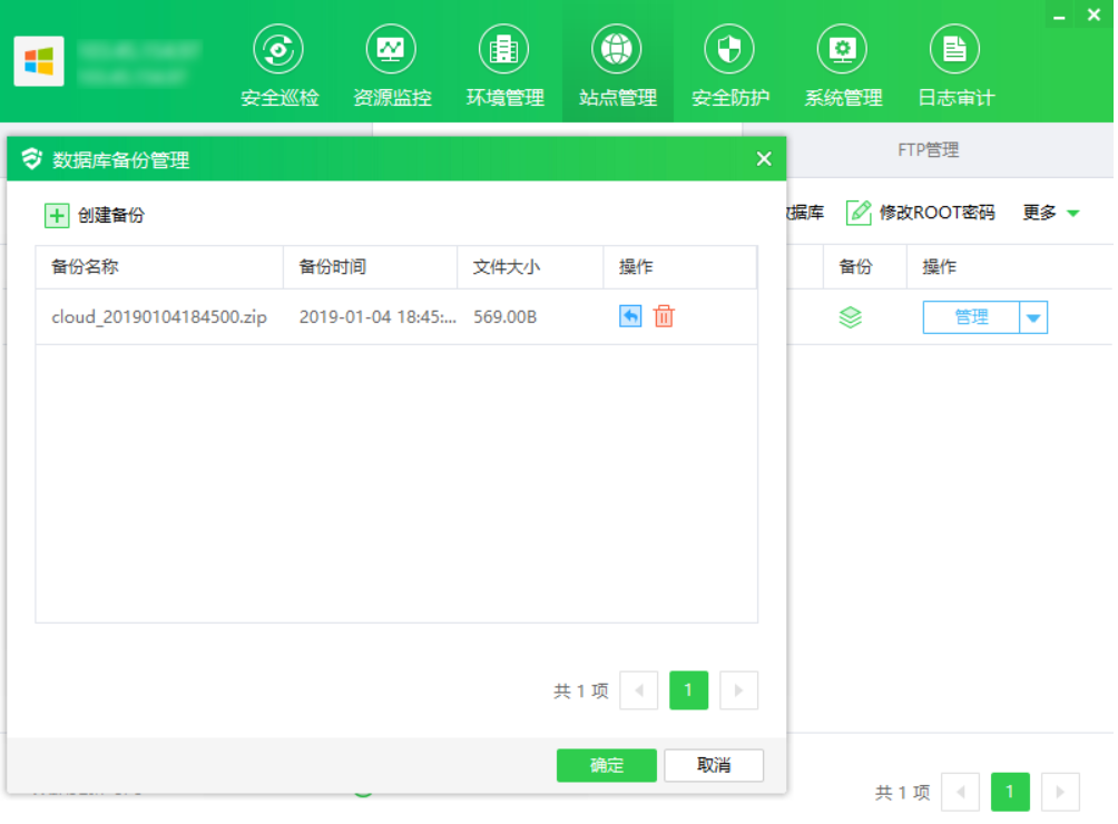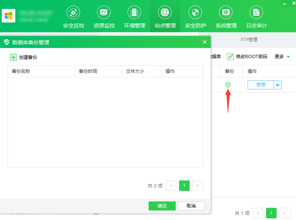 ① 点击"备份",显示数据库备份管理弹框