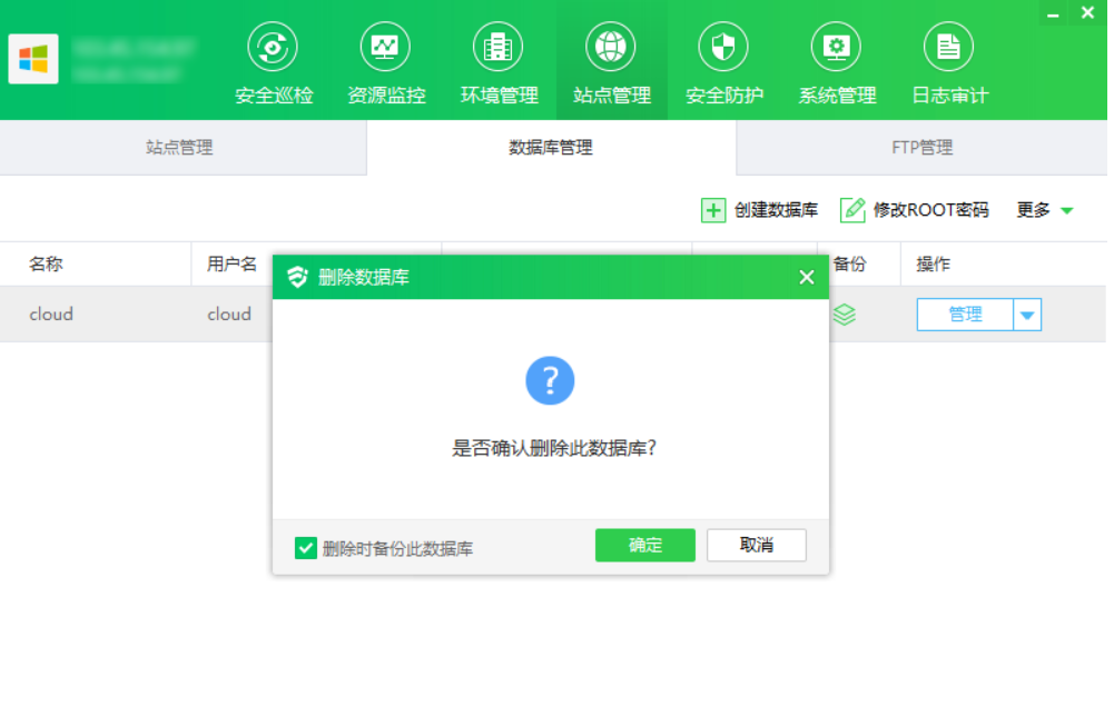 ③ 点击“删除”,显示删除数据库弹框